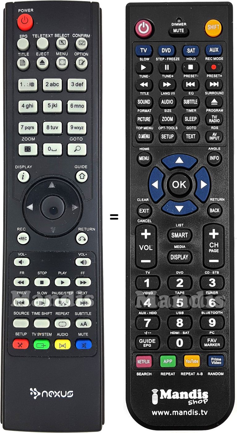Below, we will show you the correspondence between each button on the original remote control and the button that performs the same function on the replacement remote control. In some cases, you may need to press the SHIFT key before pressing another button to perform certain actions. These additional functions are often not widely used and are included to facilitate understanding of the replacement remote control, or because the original remote control has more buttons than its equivalent.