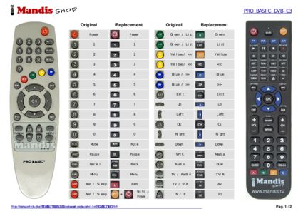 Below, we will show you the correspondence between each button on the original remote control and the button that performs the same function on the replacement remote control. In some cases, you may need to press the SHIFT key before pressing another button to perform certain actions. These additional functions are often not widely used and are included to facilitate understanding of the replacement remote control, or because the original remote control has more buttons than its equivalent.