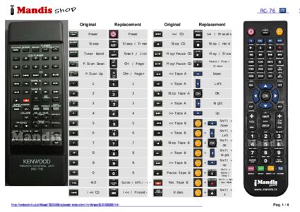 This remote control replaces most of the functions of your RC-76. It is not a universal remote control, but a copy with most of the buttons and functions of your original.