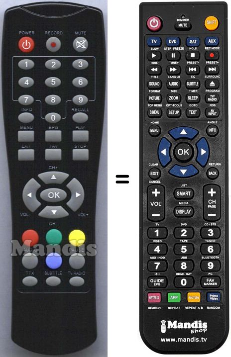 Remote control to replace the original and all its functions.