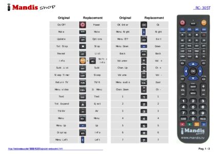 This remote control fully replaces your RC 305T and offers all the functions of the original.