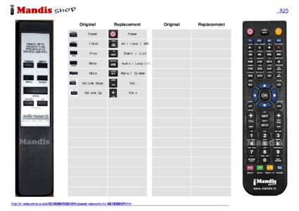 Below, we will show you the correspondence between each button on the original remote control and the button that performs the same function on the replacement remote control. In some cases, you may need to press the SHIFT key before pressing another button to perform certain actions. These additional functions are often not widely used and are included to facilitate understanding of the replacement remote control, or because the original remote control has more buttons than its equivalent.