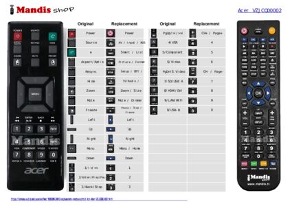 Home > Brands > Remote controls Acer > Remote control for ACER VZ.JCQ00.002