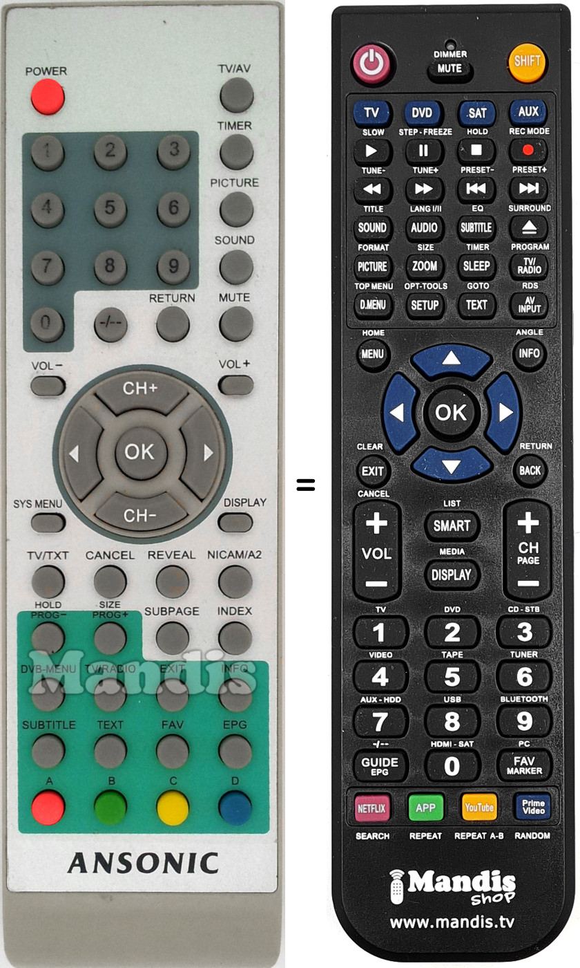 Remote control to replace the original and all its functions.