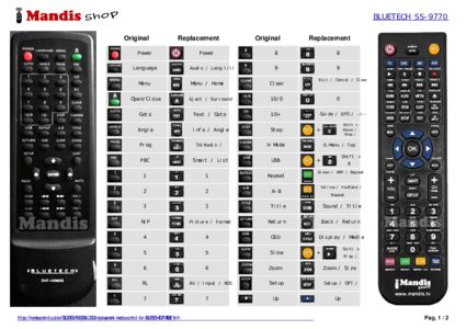 Below, we will show you the correspondence between each button on the original remote control and the button that performs the same function on the replacement remote control. In some cases, you may need to press the SHIFT key before pressing another button to perform certain actions. These additional functions are often not widely used and are included to facilitate understanding of the replacement remote control, or because the original remote control has more buttons than its equivalent.