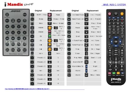 This remote control fully replaces your Wave Music System and offers all the functions of the original.