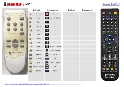 This remote control fully replaces your BSA4511 and offers all the functions of the original.