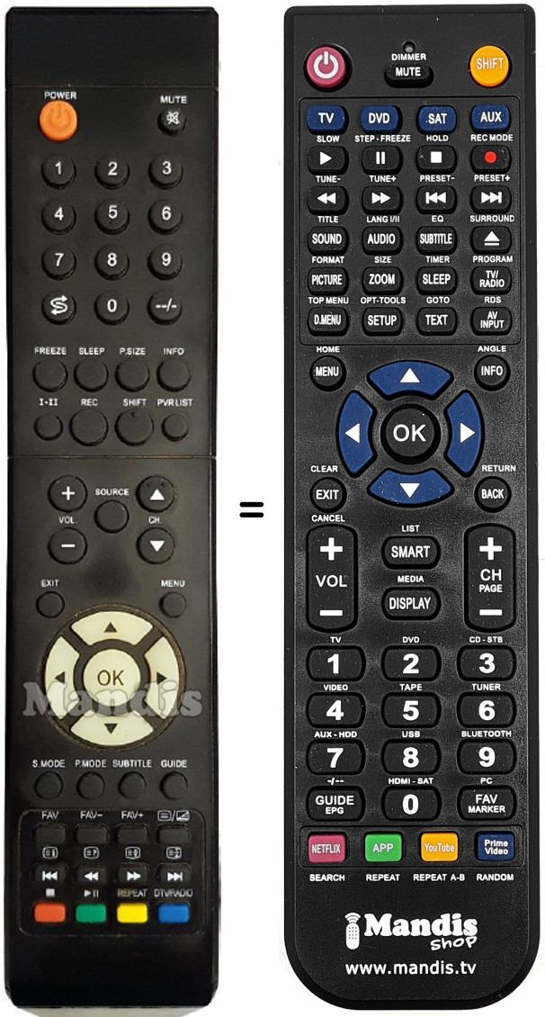 Remote control to replace the original and all its functions.