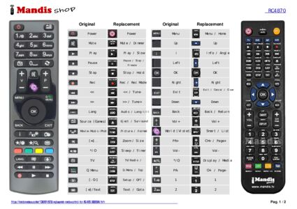 Below, we will show you the correspondence between each button on the original remote control and the button that performs the same function on the replacement remote control. In some cases, you may need to press the SHIFT key before pressing another button to perform certain actions. These additional functions are often not widely used and are included to facilitate understanding of the replacement remote control, or because the original remote control has more buttons than its equivalent.