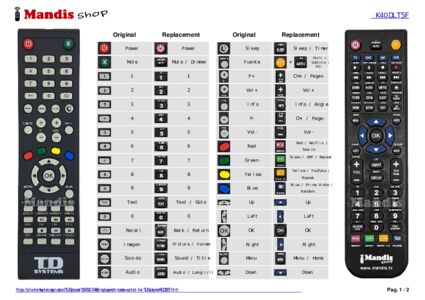 Below, we will show you the correspondence between each button on the original remote control and the button that performs the same function on the replacement remote control. In some cases, you may need to press the SHIFT key before pressing another button to perform certain actions. These additional functions are often not widely used and are included to facilitate understanding of the replacement remote control, or because the original remote control has more buttons than its equivalent.