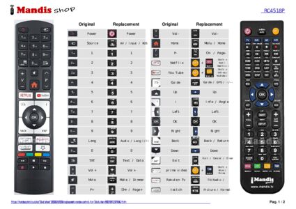A document is included to help you use the new remote control easily, showing the button correspondence.