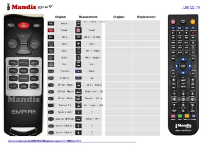 A document is included to help you use the new remote control easily, showing the button correspondence.