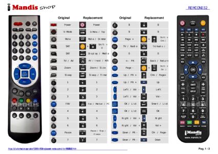 A document is included to help you use the new remote control easily, showing the button correspondence.