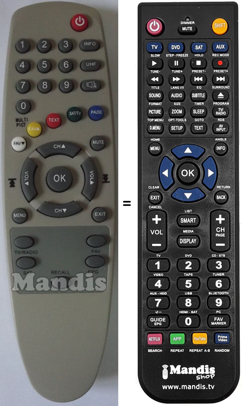 It is not a universal remote but a substitute for the original.