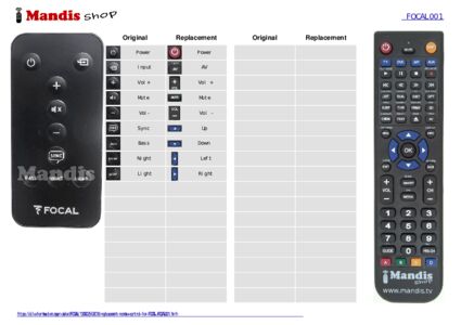 This remote control fully replaces your FOCAL001 and offers all the functions of the original.