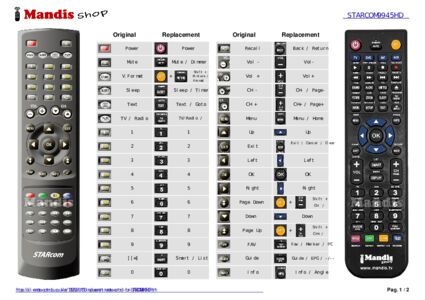 This remote control fully replaces your STARCOM9945HD and offers all the functions of the original.