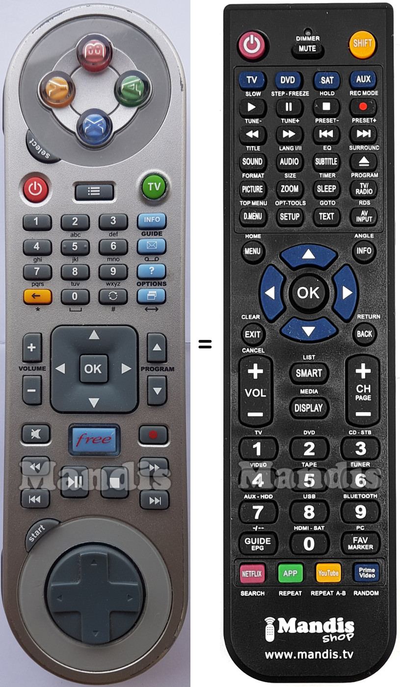 This remote control fully replaces your FreeboxHD and offers all the functions of the original.
