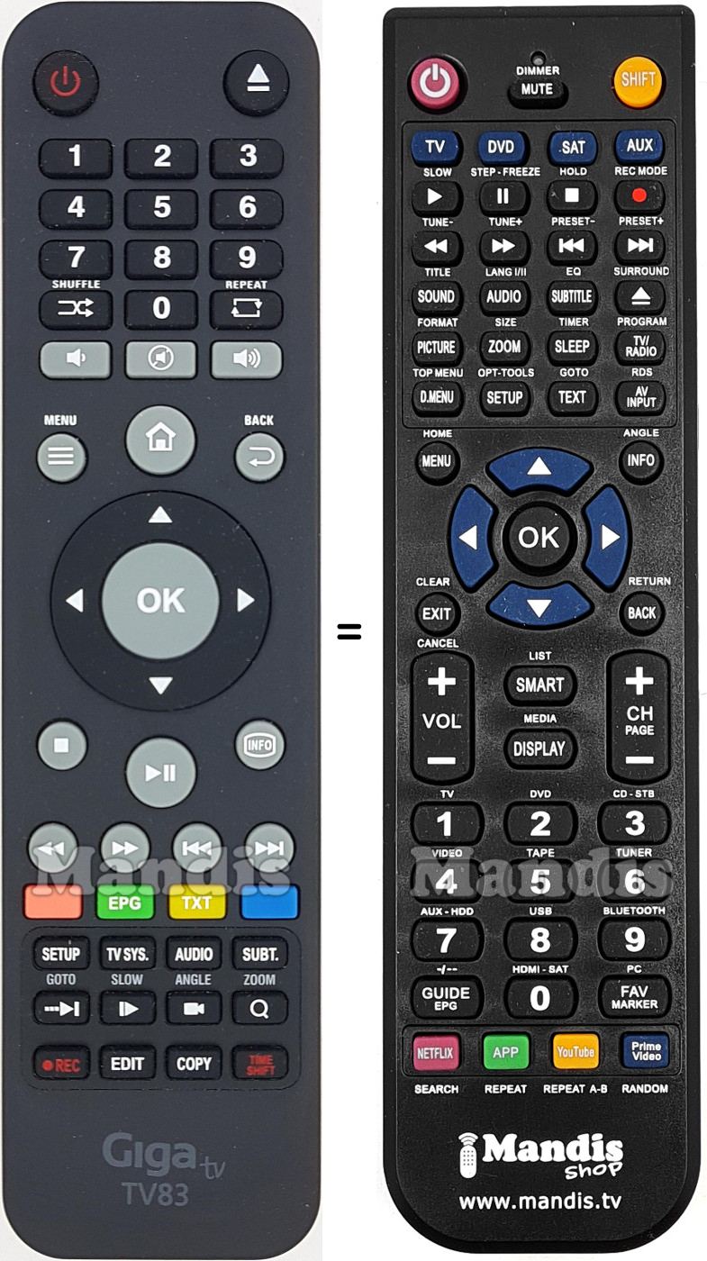This remote control fully replaces your TV83 and offers all the functions of the original.