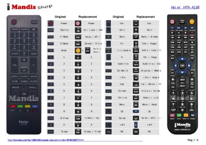 A document is included to help you use the new remote control easily, showing the button correspondence.