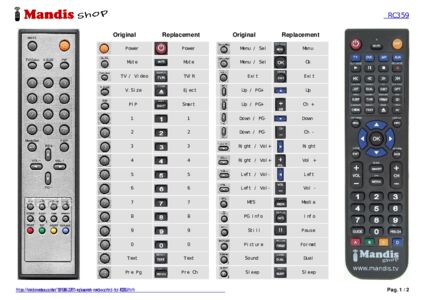 This remote control fully replaces your RC359 and offers all the functions of the original.