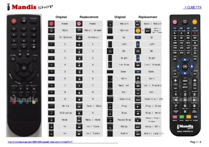 Below, we will show you the correspondence between each button on the original remote control and the button that performs the same function on the replacement remote control. In some cases, you may need to press the SHIFT key before pressing another button to perform certain actions. These additional functions are often not widely used and are included to facilitate understanding of the replacement remote control, or because the original remote control has more buttons than its equivalent.
