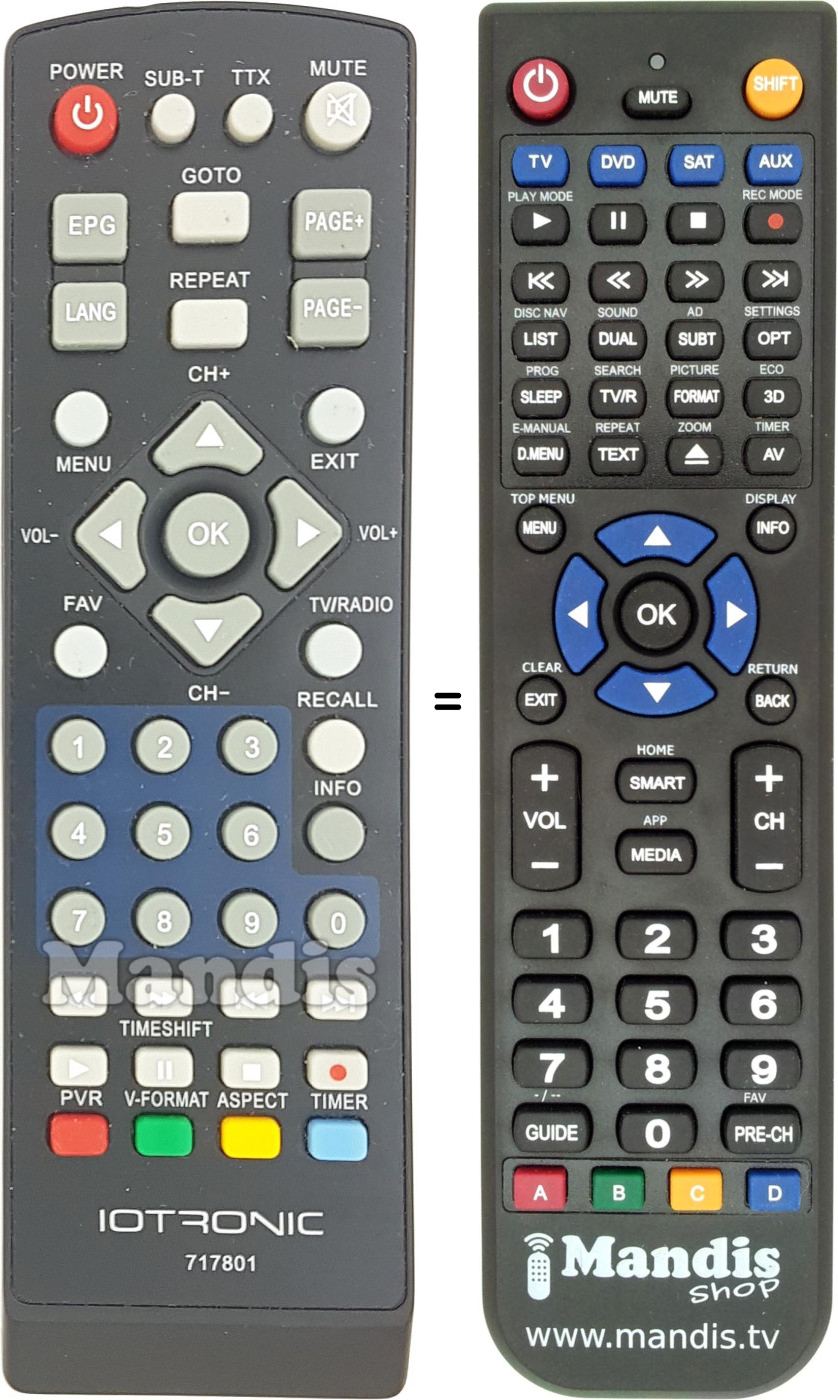 This remote control fully replaces your 717801 and offers all the functions of the original.