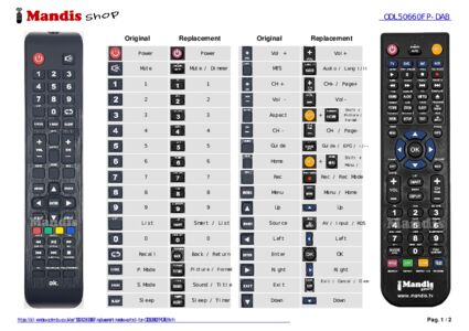 This remote control fully replaces your ODL50660FP-DAB and offers all the functions of the original.
