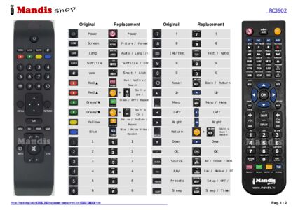 A document is included to help you use the new remote control easily, showing the button correspondence.