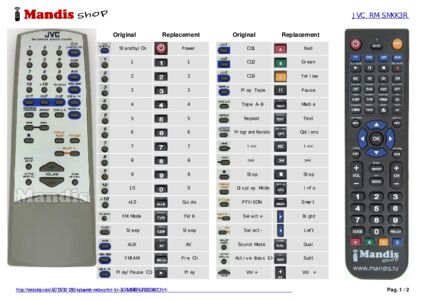 Below, we will show you the correspondence between each button on the original remote control and the button that performs the same function on the replacement remote control. In some cases, you may need to press the SHIFT key before pressing another button to perform certain actions. These additional functions are often not widely used and are included to facilitate understanding of the replacement remote control, or because the original remote control has more buttons than its equivalent.
