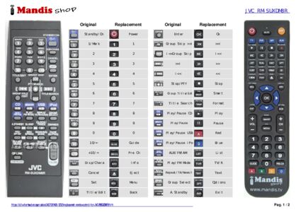 Below, we will show you the correspondence between each button on the original remote control and the button that performs the same function on the replacement remote control. In some cases, you may need to press the SHIFT key before pressing another button to perform certain actions. These additional functions are often not widely used and are included to facilitate understanding of the replacement remote control, or because the original remote control has more buttons than its equivalent.