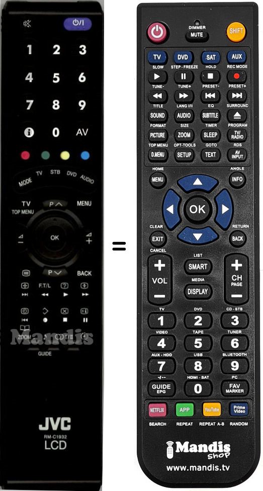 Remote control to replace the original RMC1932 (RMC19321C) and all its functions.