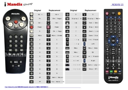 This remote control fully replaces your RC8205/21 (482221910289) and offers all the functions of the original.