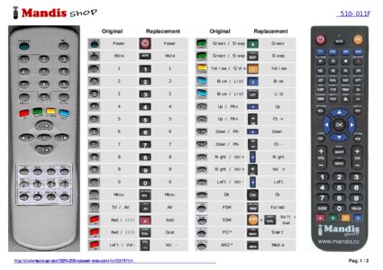 This remote control fully replaces your 510-011F and offers all the functions of the original.