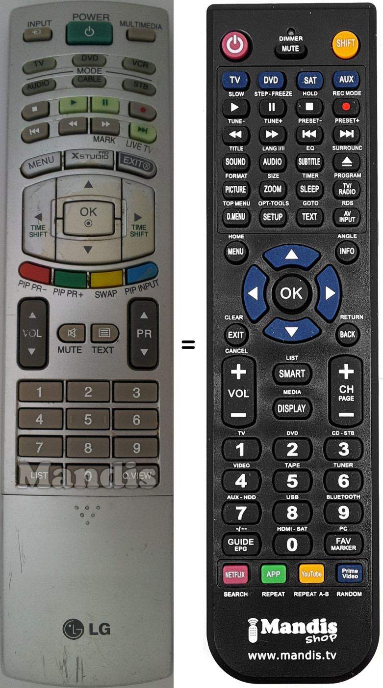 Remote control to replace the original AKB30588001 and all its functions. It is not a universal remote but a substitute for the original. You will receive the remote ready to use: you only need to install the batteries. It is not necessary to program it. We offer you our full guarantee that the remote will fulfil all the functions of the original.