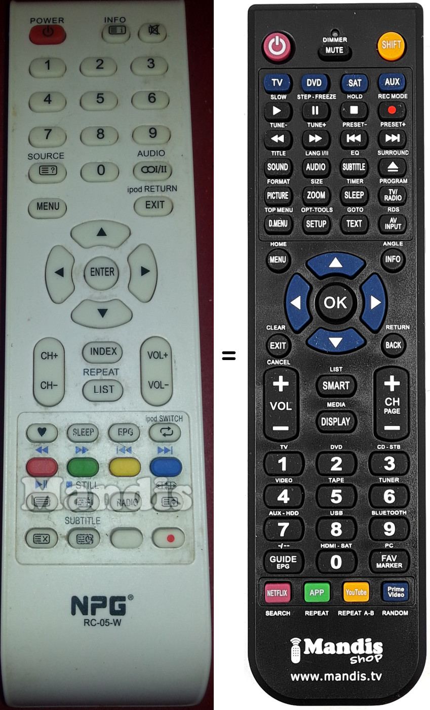 Remote control to replace the original and all its functions.