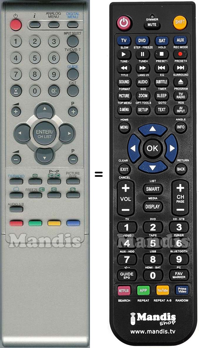 Below, we will show you the correspondence between each button on the original remote control and the button that performs the same function on the replacement remote control. In some cases, you may need to press the SHIFT key before pressing another button to perform certain actions. These additional functions are often not widely used and are included to facilitate understanding of the replacement remote control, or because the original remote control has more buttons than its equivalent.