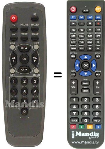 This remote control performs all the functions of the original remote control: