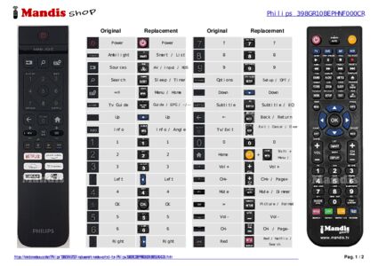 A document is included to help you use the new remote control easily, showing the button correspondence.