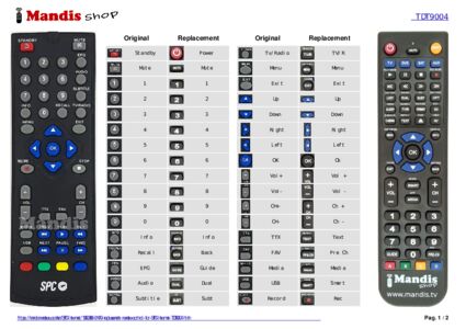 This remote control fully replaces your TDT9004 and offers all the functions of the original.