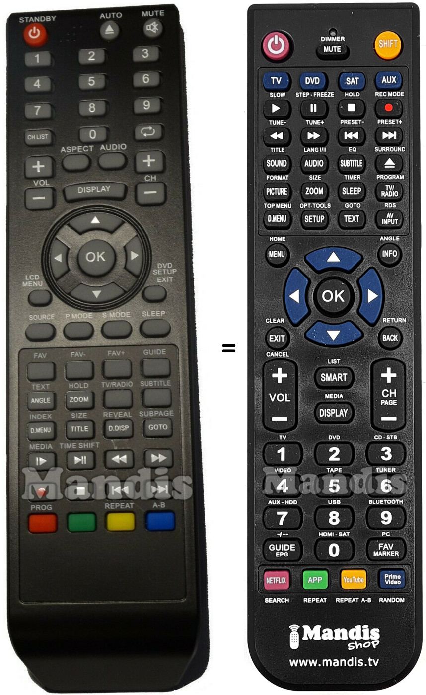 Below, we will show you the correspondence between each button on the original remote control and the button that performs the same function on the replacement remote control. In some cases, you may need to press the SHIFT key before pressing another button to perform certain actions. These additional functions are often not widely used and are included to facilitate understanding of the replacement remote control, or because the original remote control has more buttons than its equivalent.