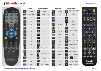 This remote control fully replaces your REMCON1313 and offers all the functions of the original.