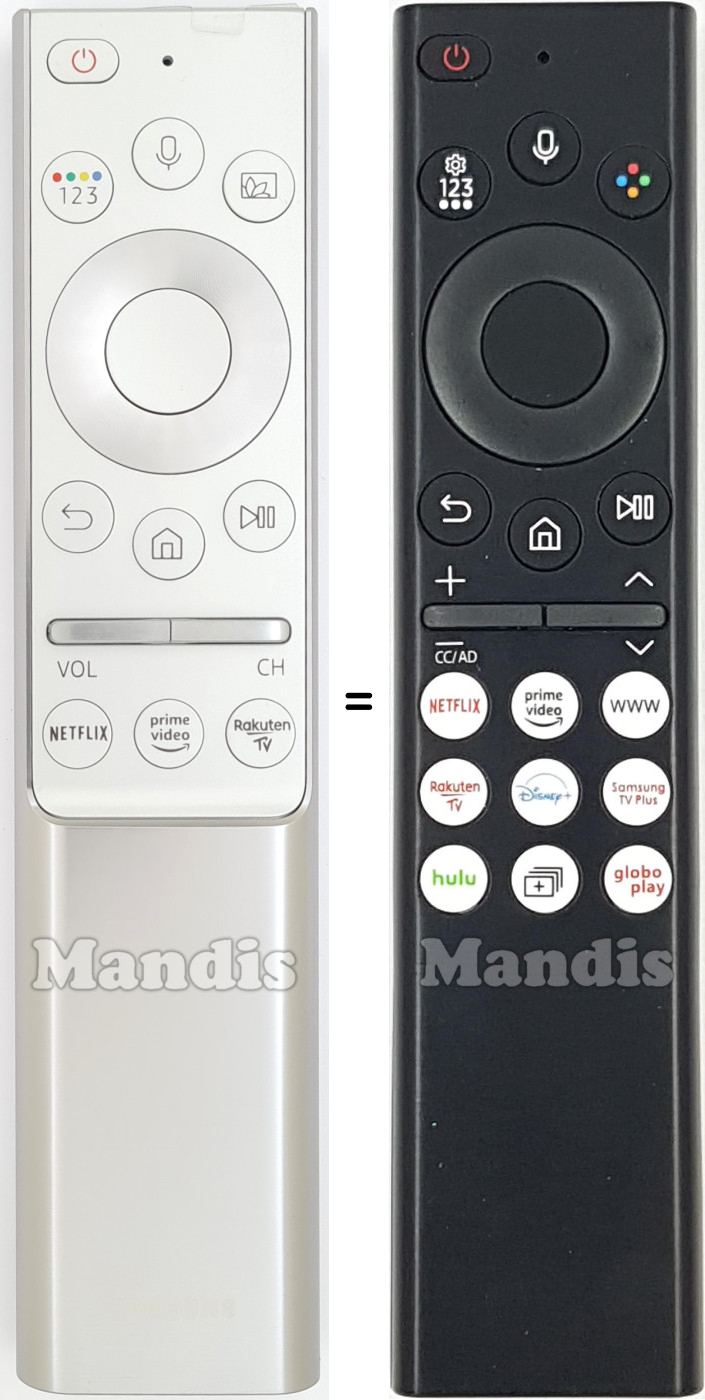 Modernize your Samsung Smart TV with this elegant and functional remote control. It offers complete control and comfort thanks to its voice technology and ergonomic design. It works perfectly with all Samsung TVs with Bluetooth, ensuring a reliable and powerful connection. Featuring direct access buttons for your favorite apps like Netflix and Prime Video.