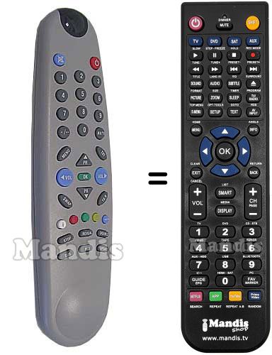 Below, we will show you the correspondence between each button on the original remote control and the button that performs the same function on the replacement remote control. In some cases, you may need to press the SHIFT key before pressing another button to perform certain actions. These additional functions are often not widely used and are included to facilitate understanding of the replacement remote control, or because the original remote control has more buttons than its equivalent.