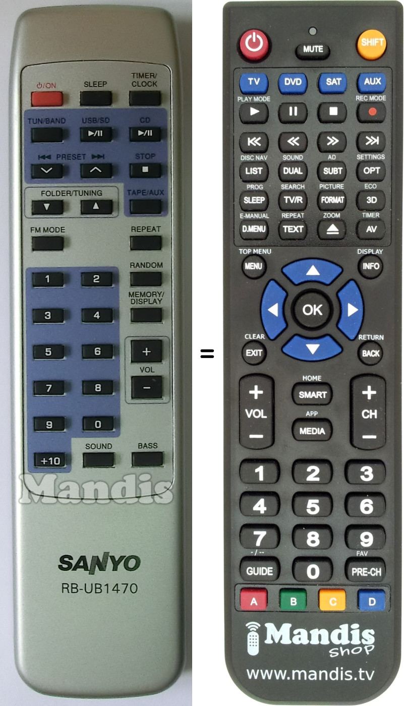 This remote control fully replaces your RB-UB1470 (MRC31X000XX020) and offers all the functions of the original.