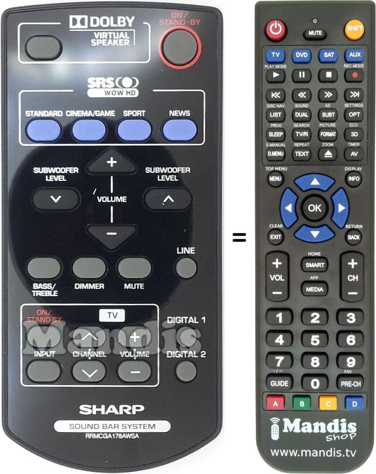 Home > Brands > Remote controls Sharp > Remote control for Sharp RRMCGA178AWSA