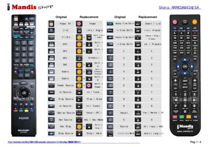 Below, we will show you the correspondence between each button on the original remote control and the button that performs the same function on the replacement remote control. In some cases, you may need to press the SHIFT key before pressing another button to perform certain actions. These additional functions are often not widely used and are included to facilitate understanding of the replacement remote control, or because the original remote control has more buttons than its equivalent.