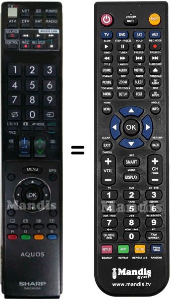 Below, we will show you the correspondence between each button on the original remote control and the button that performs the same function on the replacement remote control. In some cases, you may need to press the SHIFT key before pressing another button to perform certain actions. These additional functions are often not widely used and are included to facilitate understanding of the replacement remote control, or because the original remote control has more buttons than its equivalent.
