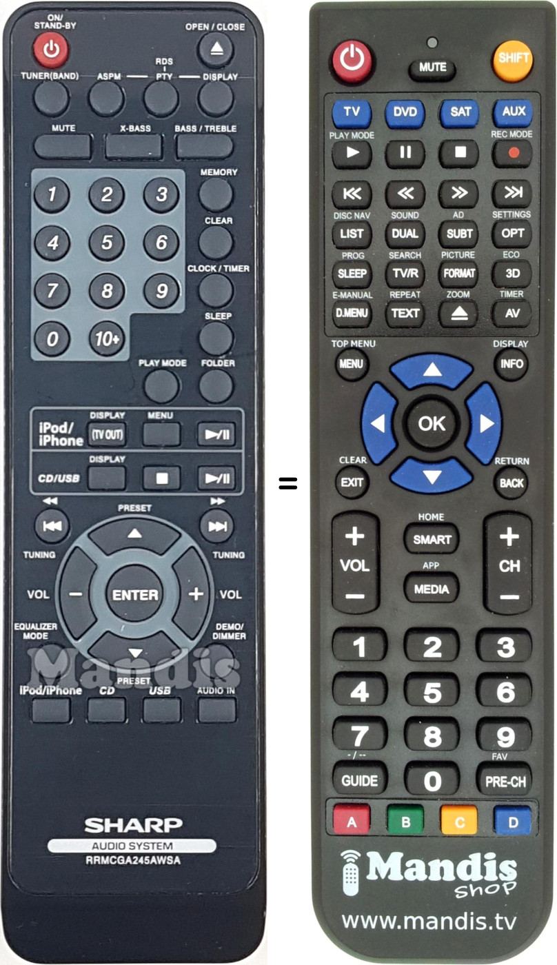 This remote control fully replaces your RRMCGA245AWSA and offers all the functions of the original.