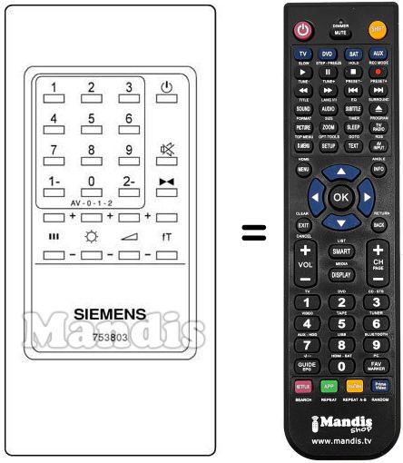 Remote control to replace the original and all its functions.