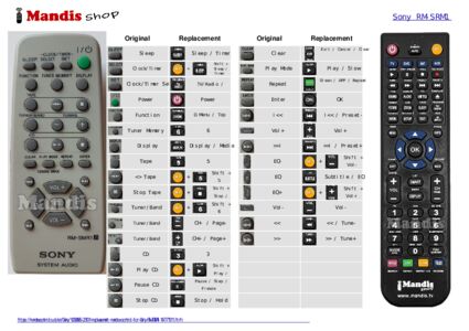 This remote control fully replaces your RM-SMR1 (147771511) and offers all the functions of the original.